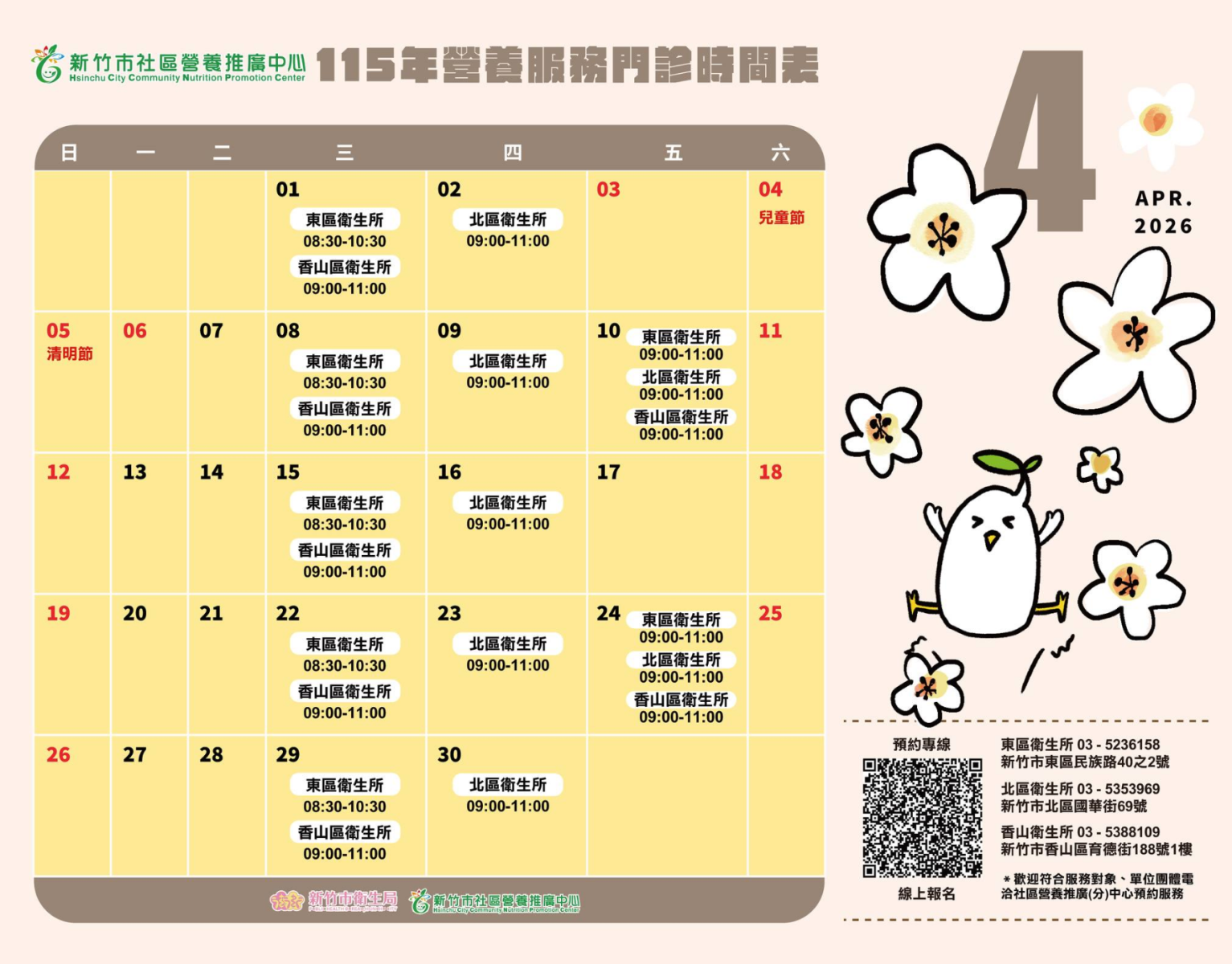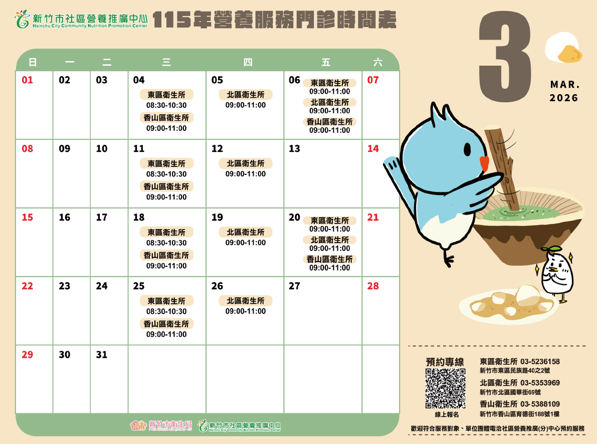 營養門診加診囉~ 東區、北區、香山區都有歐! |