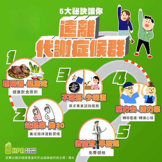 研究顯示,腰圍過大是代謝症候群的重要指標,與高血壓、血糖異常及高血脂等健康問題密切相關,並顯著增加心血管疾病、糖尿病及中風等慢性病的風險。健康來自日常的每個選擇,透過良好習慣、適量運動與均衡飲食,就能降低風險,讓身體回到理想狀態,為幫助民眾關注自身健康,遠離代謝症候群的威脅~