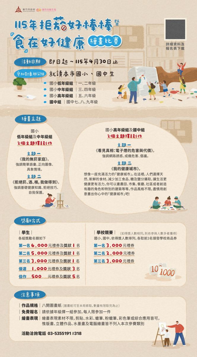 新竹市衛生局推出「拒菸好棒棒」暨「食」在好健康 繪畫比賽!!